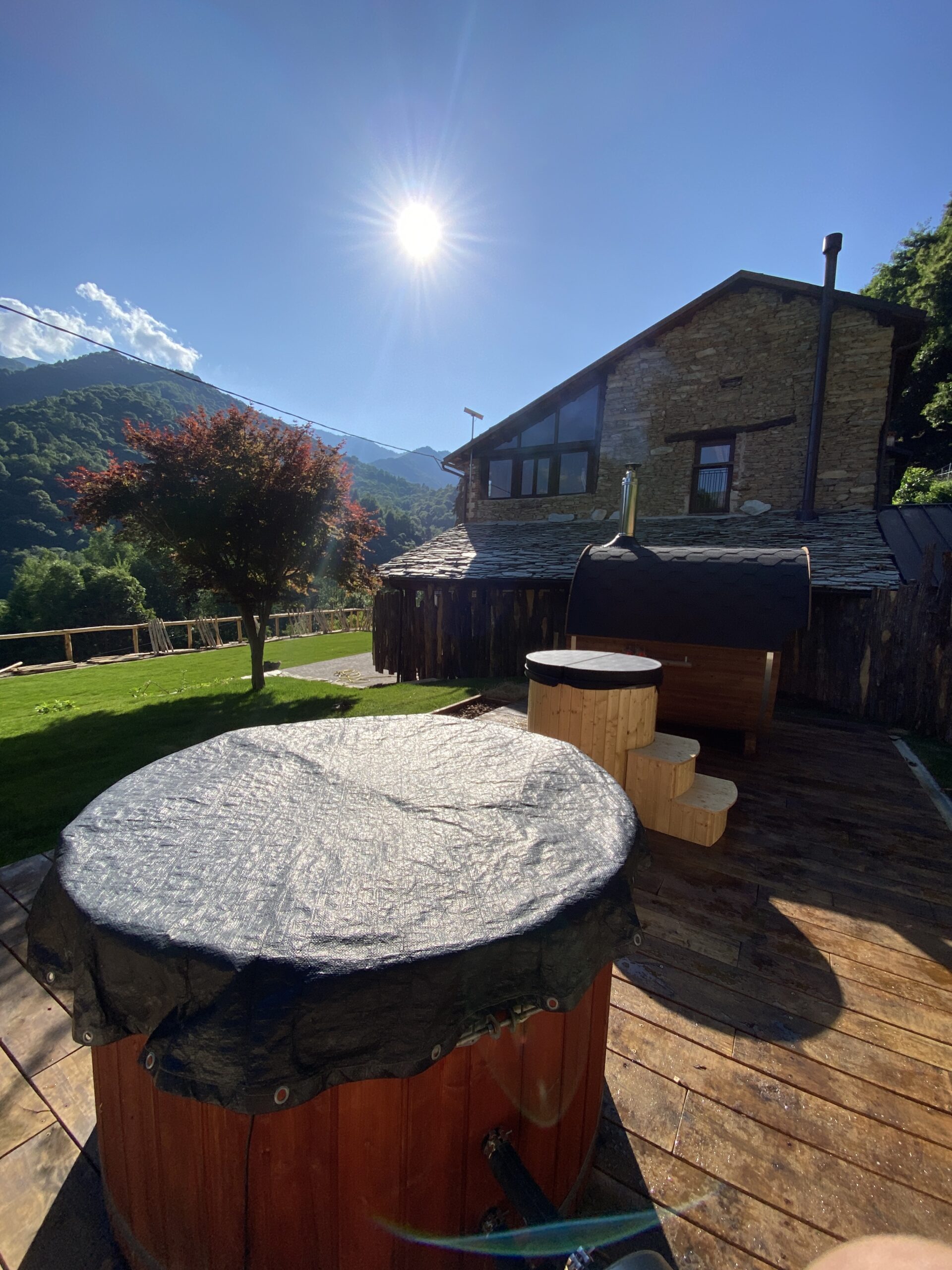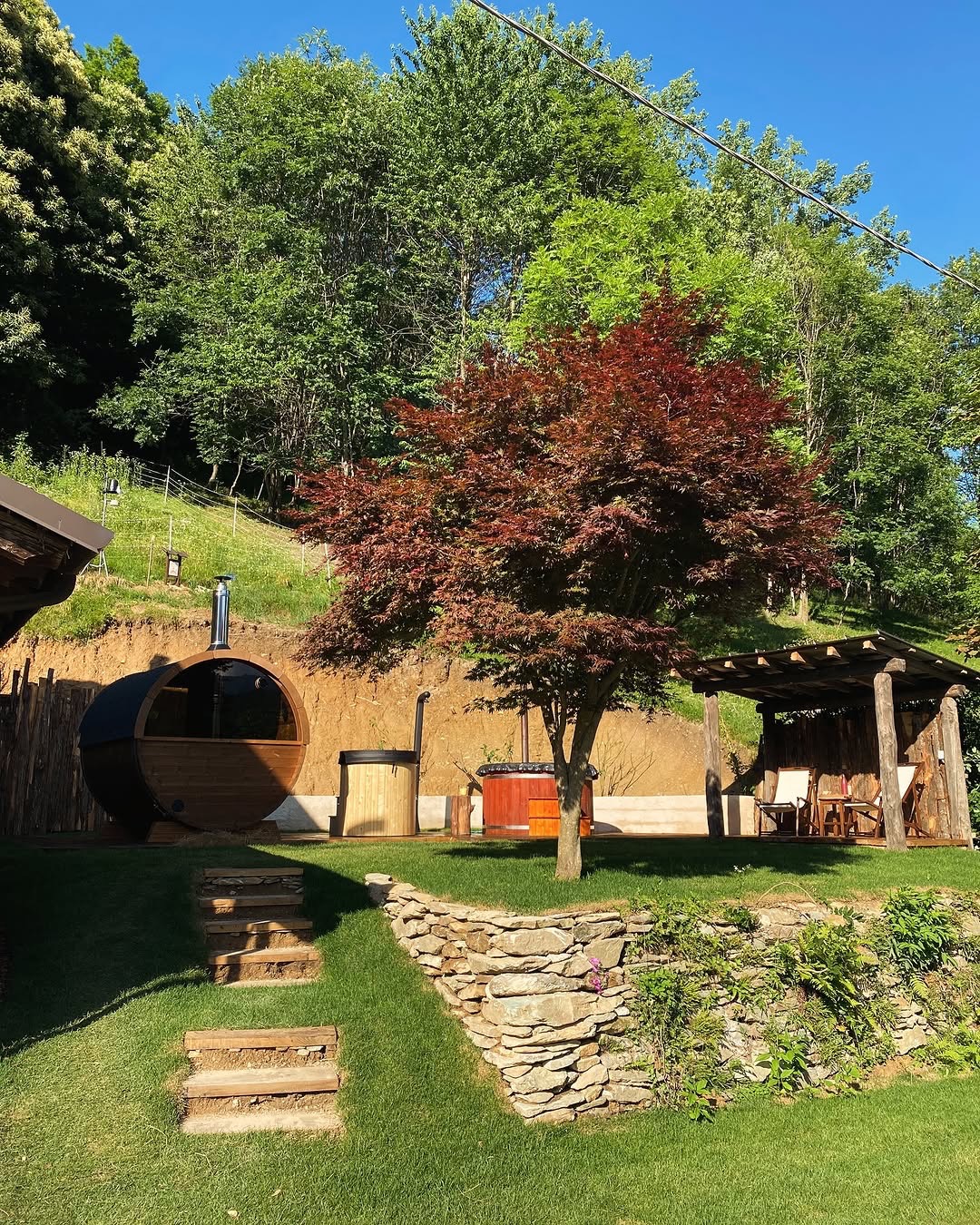 Gli uccellini che canticchiano in primavera, le lucciole che danzano in estate, il ticchettio della pioggia tra mille colori d’autunno fino al silenzio assoluto di una nevicata in inverno. Vivere sensazioni, emozioni uniche immersi nell’acqua scaldata dalla stufa a legna fino a 38-40°C.